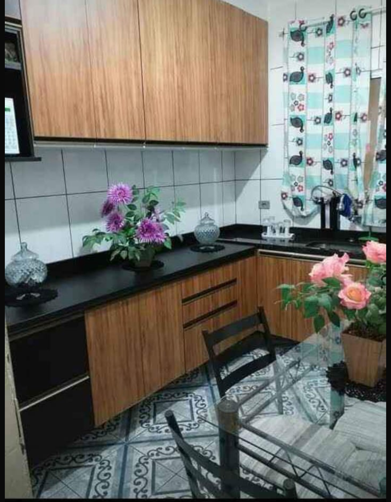 Um sobrado com três quartos, sala, e cozinha com armário planejado.
