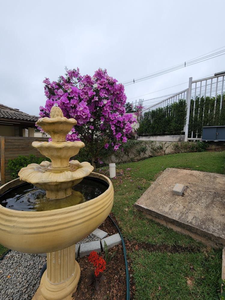 À rea de lazer coberta, tendo churrasqueira, banheiro e demais acessórios para uma bom evento em família. Ambiente com muitos jardins, bom espacejamento entre as casas e com muita segurança.