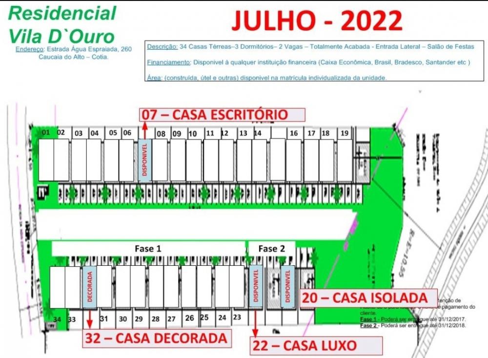 IMÓVEL de condomínio(110m2)| Casa Térrea | 03 dormitórios | 02 Vagas | Caucaia do Alto - Cotia (SP). R$ 319 mil